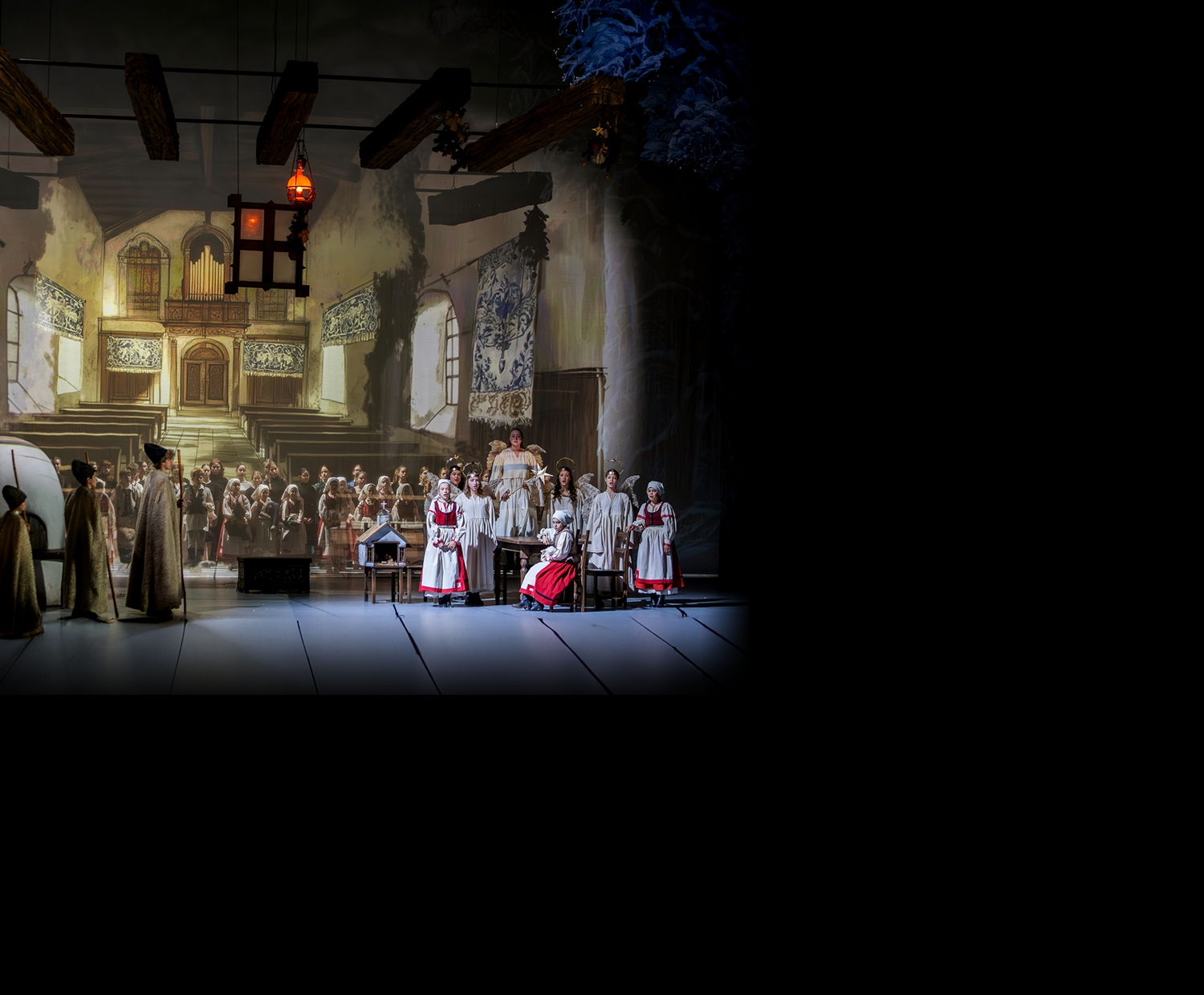 A mi előadásunk nemcsak a zenét és zeneszerzőket, hanem a cselekményt tekintve is két síkon zajlik. Megjelenik benne a mai kor, és megidézzük Ádám Jenőt s korát, vagyis az 1931-es erdélyi kis falunak egy karácsony estjét, ahol a család vacsorára készül, várják a betlehemeseket, kántálókat, regölőket. Csupa néprajzi szempontból is jelentős, szinte dokumentumjáték-opera kerekedik így, amelyből sok érdekességet meg lehet tudni, olyan szokásokról, tárgyakról, amiket ma nem is ismerünk. Szerettük volna, ha a cselekmény szempontjából is izgalmasabb lenne az önmagában inkább csupán életképeket tartalmazó mű a gyerekek számára. Így Szokolai Brigitta dramaturg írt hozzá egy keretjátékot, mely során egy banda belopózik az Operaházba, és annak varázslatos világával ismerkednek meg, ahol ha kinyílik egy véletlenül talált láda, felcsendül a muzsika… És még arra is fény derül, hogy ki is valójában az 1931-ben született ikerpár… Számomra fontos volt, hogy valódi, intim, karácsonyi hangulatú előadást készítsünk a gyerekeknek – mégpedig gyerekekkel. A három felnőtt szereplőn kívül (Nagypapa, Gazda, Gazdasszony), az összes szerepet gyermekkari tagok játsszák, és igazán nagy élmény a velük való közös munka, az odaadásuk, koncentráltságuk, érdeklődésük.